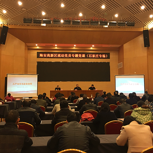 海安縣委組織部聯(lián)合高新區(qū)黨工委,邀請南通市委宣傳部特聘兼職講師、海安金牌講師,縣委宣傳部副部長、縣社科聯(lián)主席劉萬春,為80多名在石家莊的黨員和入黨積極分子集中上專題黨課,進行黨員干部冬訓(xùn)傳播理論輔導(dǎo)講座??h委組織部組織員辦季然主持報告會。