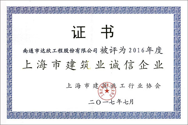 8月8日,2016年度上海市建筑施工企業(yè)綜合實力排名、上海市建筑業(yè)誠信企業(yè)、上海市建設(shè)工程白玉蘭獎、上海市優(yōu)質(zhì)工程(結(jié)構(gòu)工程)頒獎大會隆重舉行。第一工程公司被授予2016年度上海市建筑業(yè)誠信企業(yè),這是第一工程公司連續(xù)十年獲此殊榮。
