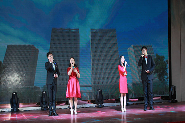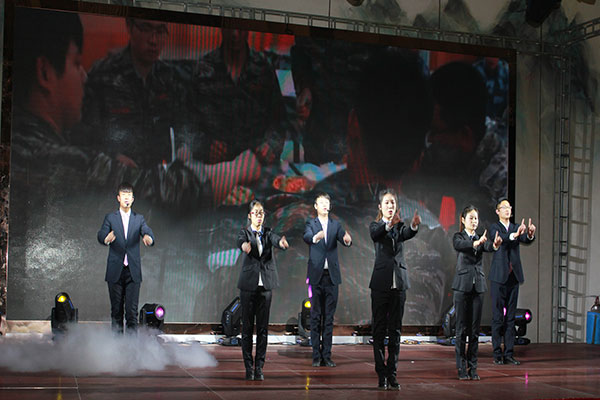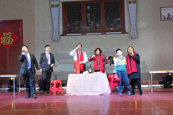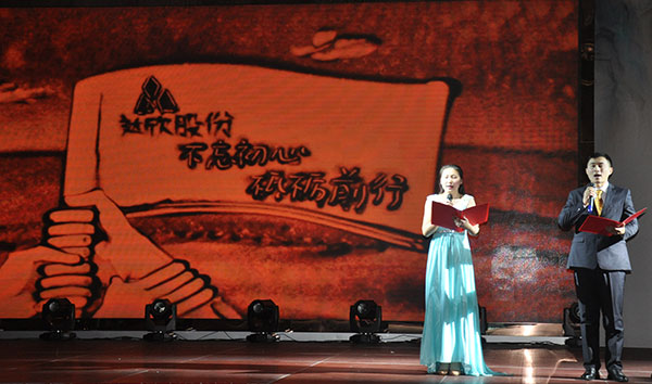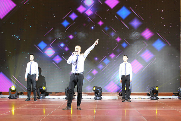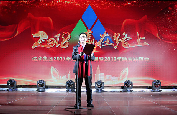 集團(tuán)高管們?cè)谂炫鹊摹拔覀冏咴诖舐飞稀甭曋屑で榈菆?chǎng),公司董事長(zhǎng)馬和軍進(jìn)行了致辭答謝。他回顧了集團(tuán)一年來(lái)所取得的輝煌成績(jī),感謝社會(huì)各界及全體達(dá)欣人的努力,并對(duì)公司的未來(lái)之路描繪了新的發(fā)展藍(lán)圖;接著,縣委書(shū)記顧國(guó)標(biāo)發(fā)表講話, 他指出,作為全縣經(jīng)濟(jì)社會(huì)發(fā)展的重要板塊,我縣建筑業(yè)總體發(fā)展態(tài)勢(shì)良好,總量和質(zhì)量穩(wěn)步提升。作為“海安建筑鐵軍”中的一支老牌“勁旅”,達(dá)欣集團(tuán)的市場(chǎng)競(jìng)爭(zhēng)力和品牌影響力不斷提升,他對(duì)公司2018年工作提出了新的希望,寄語(yǔ)未來(lái)集團(tuán)要進(jìn)一步深化企業(yè)體制機(jī)制創(chuàng)新,全面加快產(chǎn)業(yè)升級(jí)步伐,全面實(shí)施“科技強(qiáng)企”戰(zhàn)略,搶抓機(jī)遇,精準(zhǔn)定位,打造達(dá)欣更加輝煌的未來(lái)!