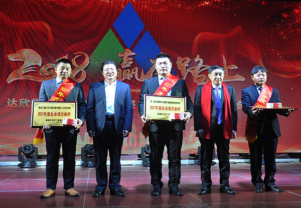 集團(tuán)黨委書(shū)記劉厚純宣讀了表彰決定, 縣領(lǐng)導(dǎo)為獲得集團(tuán)2017年度的項(xiàng)目標(biāo)桿、達(dá)欣工匠、青年標(biāo)兵等先進(jìn)代表進(jìn)行了頒獎(jiǎng)。