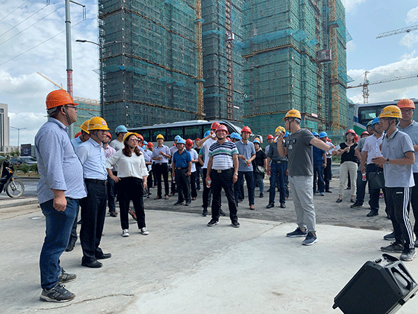 在觀摩過程中,縣安監(jiān)站監(jiān)督員任軍及項目經(jīng)理周仲清對現(xiàn)場所應(yīng)用到的揚塵防治措施進行了具體介紹,就現(xiàn)場質(zhì)量、安全方面的管理經(jīng)驗及優(yōu)秀做法與現(xiàn)場參加的觀摩企業(yè)代表進行了深入交流。陶曉林局長對項目在質(zhì)量、安全方面的管理工作給予了充分肯定,對現(xiàn)場質(zhì)量、安全方面的優(yōu)秀做法給予了高度評價。與會人員參觀了現(xiàn)場樣板展示區(qū),并來到安全VR體驗館進行親身體驗。最后,陶曉林局長要求參加觀摩的單位要把好的經(jīng)驗帶回去,加強現(xiàn)場質(zhì)量安全管理,確保施工現(xiàn)場的安全,以優(yōu)異的成績迎接新中國成立70周年!