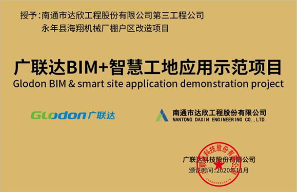 調(diào)研期間與項(xiàng)目BIM團(tuán)隊(duì)人員進(jìn)行了互動交流,經(jīng)過一系列的驗(yàn)收標(biāo)準(zhǔn)考核后,最終授予該項(xiàng)目“廣聯(lián)達(dá)BIM+智慧工地應(yīng)用示范項(xiàng)目”稱號。