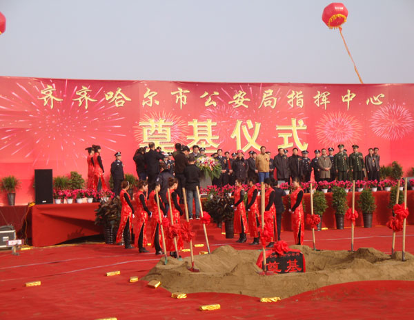奠基儀式由市公安局黨委委員、工會主席萬迎新主持,副市長、市公安局黨委書記、局長吳剛致辭,他在致辭中說作為全市矚目、全警矚目的大項目、公安基礎(chǔ)建設(shè)的大工程,衷心希望南通市達(dá)欣工程股份有限公司的建設(shè)者們精心施工,將公安指揮中心建設(shè)成一流的精品工程。公司監(jiān)事會主席、第七工程公司經(jīng)理王建國同志在奠基儀式上作表態(tài)性發(fā)言,他表示要認(rèn)真履行合同,努力將本項目打造成齊市的典范工程、黑龍江省的精品工程、全國的優(yōu)質(zhì)工程,讓建設(shè)方滿意,讓社會放心。