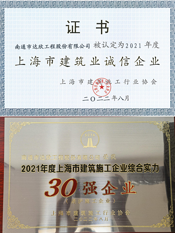 近日,上海市建筑施工行業(yè)協(xié)會公布了2021年度“上海市建筑業(yè)誠信企業(yè)”和“上海市建筑施工企業(yè)綜合實力”認定結(jié)果。第一工程公司連續(xù)14年獲得“上海市建筑業(yè)誠信企業(yè)”和“上海市建筑施工企業(yè)綜合實力”稱號。