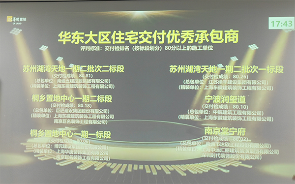 2月4日,華潤置地華東大區(qū)召開2022年度工作表彰大會,第一工程公司承建的棠寧府項目榮獲“華東大區(qū)住宅交付優(yōu)秀承包商”、“華東大區(qū)優(yōu)秀交付項目金獎”、項目經(jīng)理崔益明獲得“優(yōu)秀施工單位項目經(jīng)理”。