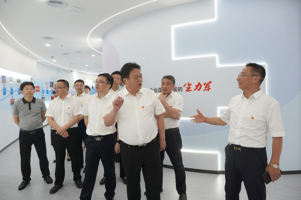 于立忠一行參觀了“征途如虹”企業(yè)印記,“初心如炬”黨建云庫,“教誨如風”達欣講堂,“使命如山”先鋒服務站,“追夢如潮”職工書屋,“群團如影”風采展示等七個版塊和書記工作室。于立忠指出,達欣黨建主題館,全方位展現(xiàn)了企業(yè)黨建成果和發(fā)展成就,形式生動,內涵豐富、詳實。于立忠強調,抓好非公企業(yè)黨建始終是促進非公經濟發(fā)展健康發(fā)展的核心舉措,“高質量黨建引領企業(yè)高質量發(fā)展”在達欣得到生動的實踐。于立忠希望,達欣集團要不斷完善優(yōu)化主題館內容,切實將黨建主題館打造為黨員、團員青年、職工群眾學習黨的創(chuàng)新理論、傳承勞模工匠精神的新平臺,并作為記錄達欣黨建工作與企業(yè)同步發(fā)展的重要載體。要繼續(xù)堅持“圍繞發(fā)展抓黨建,抓好黨建促發(fā)展”的理念,不斷豐富黨建品牌內涵,為海安非公企業(yè)黨建樹立榜樣典型,為海安發(fā)展作出新的更大貢獻。