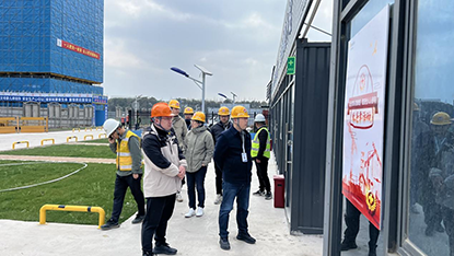 繆永建書記一行仔細(xì)聽取了本工程進(jìn)度情況,深入了解施工現(xiàn)場,檢查現(xiàn)場管理,詢問施工中遇到的困難,并給予解決意見和建議。同時(shí),他對(duì)施工現(xiàn)場管理表示肯定,他指出達(dá)欣作為南通建筑行業(yè)的明星單位,要爭取在今年上半年南通市區(qū)安全生產(chǎn)觀摩工地展現(xiàn)出項(xiàng)目的亮點(diǎn)和品質(zhì)。