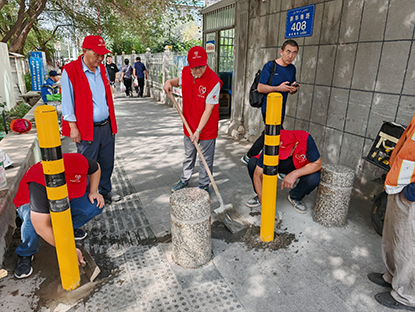 8月4日,針對人行道流動商販占道頑疾,達欣集團•魯班傳人志愿服務第十一分隊主動對接新疆維吾爾自治區(qū)烏魯木齊市天山區(qū)解放南路街道,對新華南路人行道安全警示柱進行加密安裝工作。