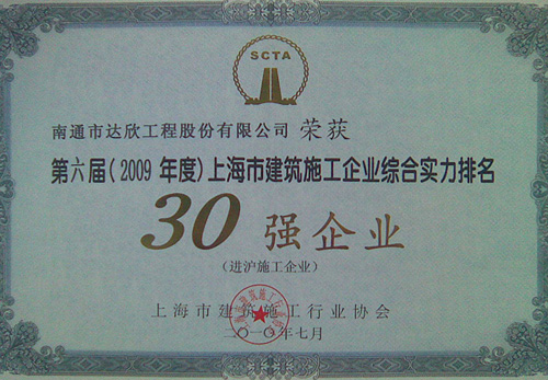 達(dá)欣股份首次挺進(jìn)進(jìn)滬施工企業(yè)前30強(qiáng)(進(jìn)滬施工的江蘇企業(yè)僅有八家),這標(biāo)志著公司跨入了進(jìn)滬強(qiáng)企的第一方陣,標(biāo)志著公司進(jìn)滬施工進(jìn)入了新階段!同時(shí)公司還再次榮獲了“上海市建筑業(yè)誠信企業(yè)”稱號。上海市的主流媒體“解放日報(bào)”、行業(yè)報(bào)刊“建筑時(shí)報(bào)”均予以報(bào)導(dǎo)。