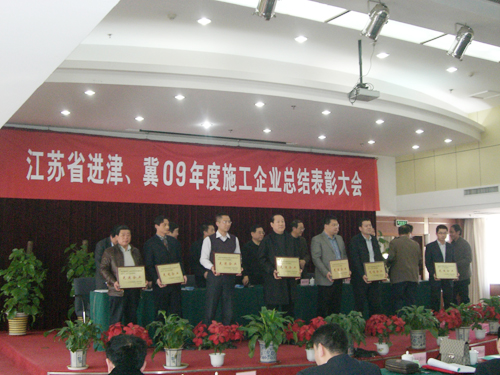 三月二十七日,江蘇省建設廳、江蘇省建筑工程管理局駐津辦在天津隆重召開了進津、冀09年施工企業(yè)總結表彰大會,出席大會的主要領導有江蘇省建設廳副廳長徐學軍、天津市建筑業(yè)協(xié)會郭俊杰會長、天津市建交委趙敏處長、質安總隊總長翟家常、施管站周國慶站長、江蘇省建設廳駐津辦主任鄧福林等。大會對2009年度江蘇省進津、冀建筑施工先進企業(yè)、優(yōu)秀項目部、優(yōu)秀建造師和施工管理先進工作者進行了表彰和頒獎,天津、石家莊分公司雙雙被授予“2009年度江蘇進津、冀施工管理先進企業(yè)”,這也是兩分公司連續(xù)三年獲此榮譽。 此外,天津君臨大廈項目部、唐山金港國際怡園小區(qū)項目部、石家莊水岸美景小區(qū)項目部被授予優(yōu)秀項目部,陳正進、張維琪、生加旺、朱玉平4位同志被評為優(yōu)秀項目經(jīng)理,陳元國、江慶華、馬和平等13位同志被評為施工管理先進工作者。