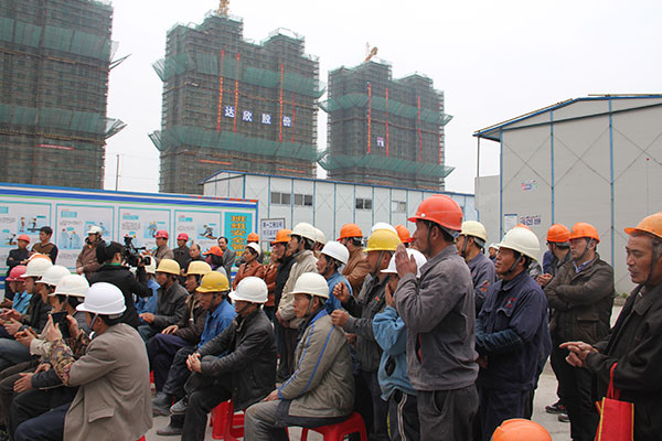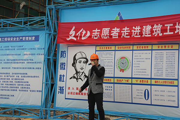 文化志愿者的精彩演出受到了職工們的熱烈歡迎,“我平時(shí)都在高空作業(yè),難得有這樣的機(jī)會(huì)坐下來(lái)看現(xiàn)場(chǎng)表演,這樣的活動(dòng)讓我們感到很開(kāi)心?!惫び牙钊蕠?guó)笑容滿面地說(shuō)。